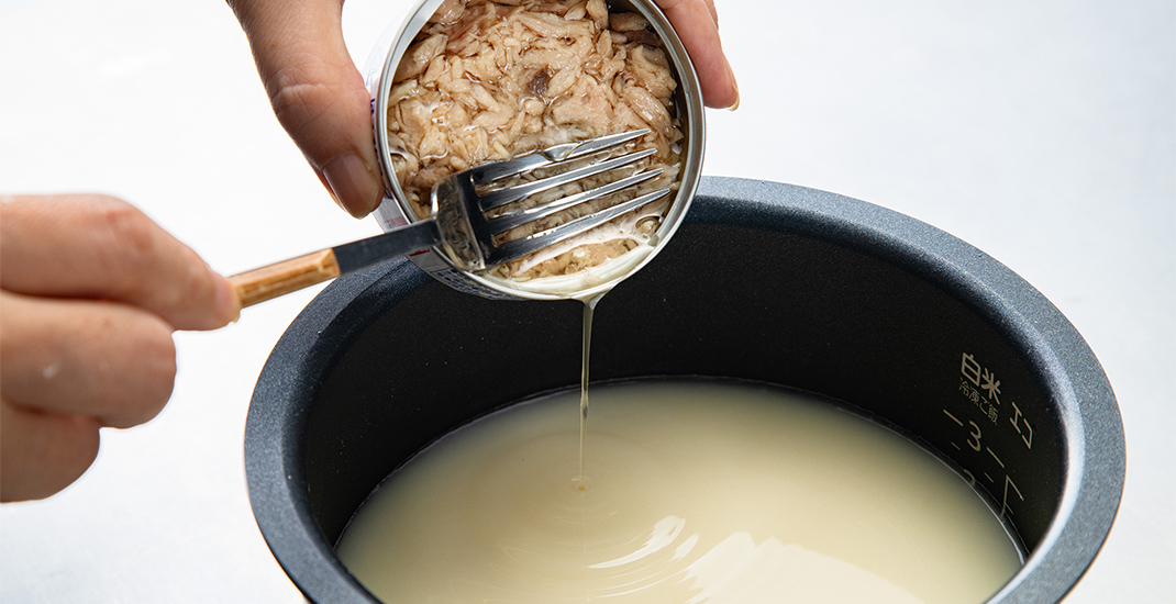 最後にツナ缶のオイルだけ加えて普通に炊飯します。